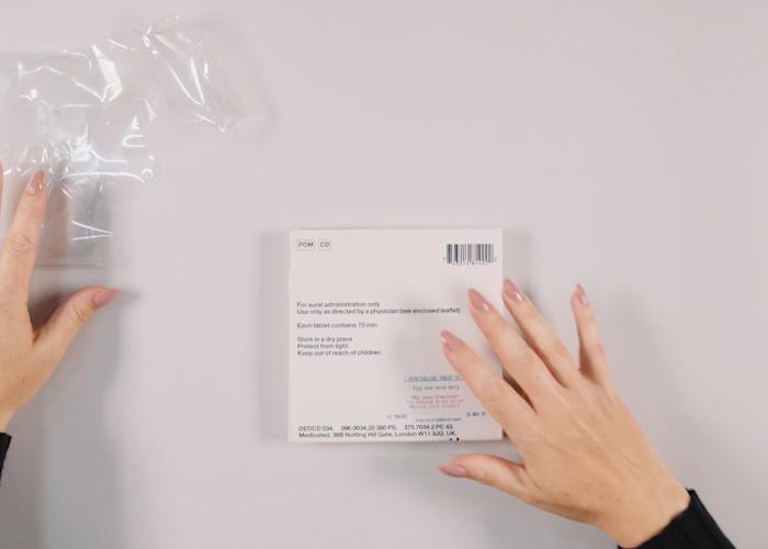 The CDs are held on a stainless steel spindle (etched with the epithet Made in Sheffield), which is screwed into two solid clear acrylic discs and the complete assembly is inserted into a foam block. The accompanying folded booklet is held in place against the foam by cellophane wrapping and is thus released upon opening.